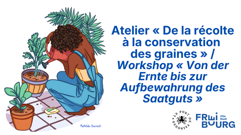 Dans les jardins du Port, plus de 120 espèces de plantes différentes sont cultivées : aromatiques, fleurs ou légumes. Cet atelier est l’occasion de faire le tri et de préparer la saison suivante au jardin. MEMO est présente pour expliquer le fonctionnement et les objectifs de sa grainothèque. Cette activité a lieu au Port de Fribourg.