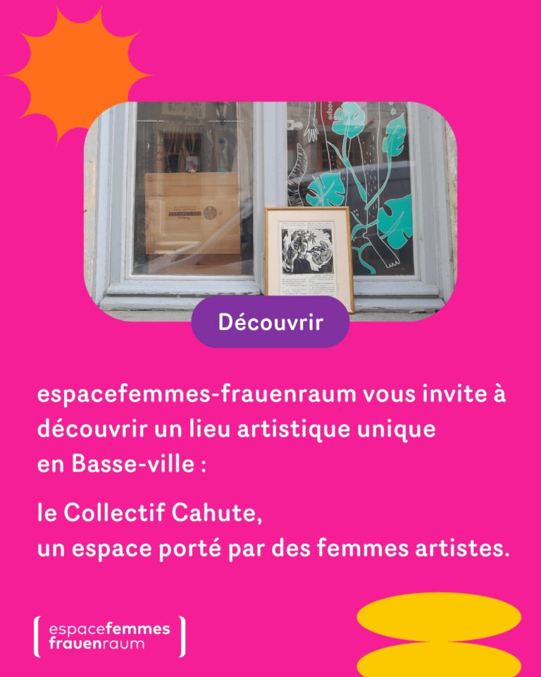 Envie de créer, d’explorer et de vous exprimer autrement ?espacefemmes-frauenraum vous invite à découvrir un lieu artistique unique en Basse-ville : le Collectif Cahute, @collectif_cahute, un espace porté par des femmes artistes.Aux côtés de Marion Leveaufre, graveuse d’art, laissez libre cours à votre créativité en expérimentant la gravure sur des supports du quotidien. Vous pourrez utiliser les installations sur place, vous initier à cette technique et explorer à votre rythme.Un moment de création et de découverte Espace enfants disponible (gratuit)Places limitées (8 participantes)Prix standard : CHF 30.–Prix petit budget : CHF 10.–En français