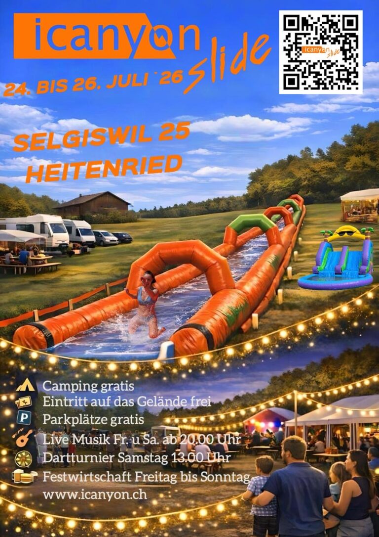 Le toboggan aquatique de 100 mètres de long fait le bonheur des petits comme des grands ! Outre ce toboggan géant spectaculaire, les plus jeunes pourront profiter d'une pataugeoire avec son propre toboggan ainsi que d'un château gonflable pour se défouler.Pour vous restaurer, un stand de restauration et un bar ouverts en continu sont à votre disposition. Les samedis et dimanches soirs, des groupes de musique live assurent un excellent divertissement et une ambiance de folie.Un atout particulier : un terrain de camping gratuit est disponible sur place.