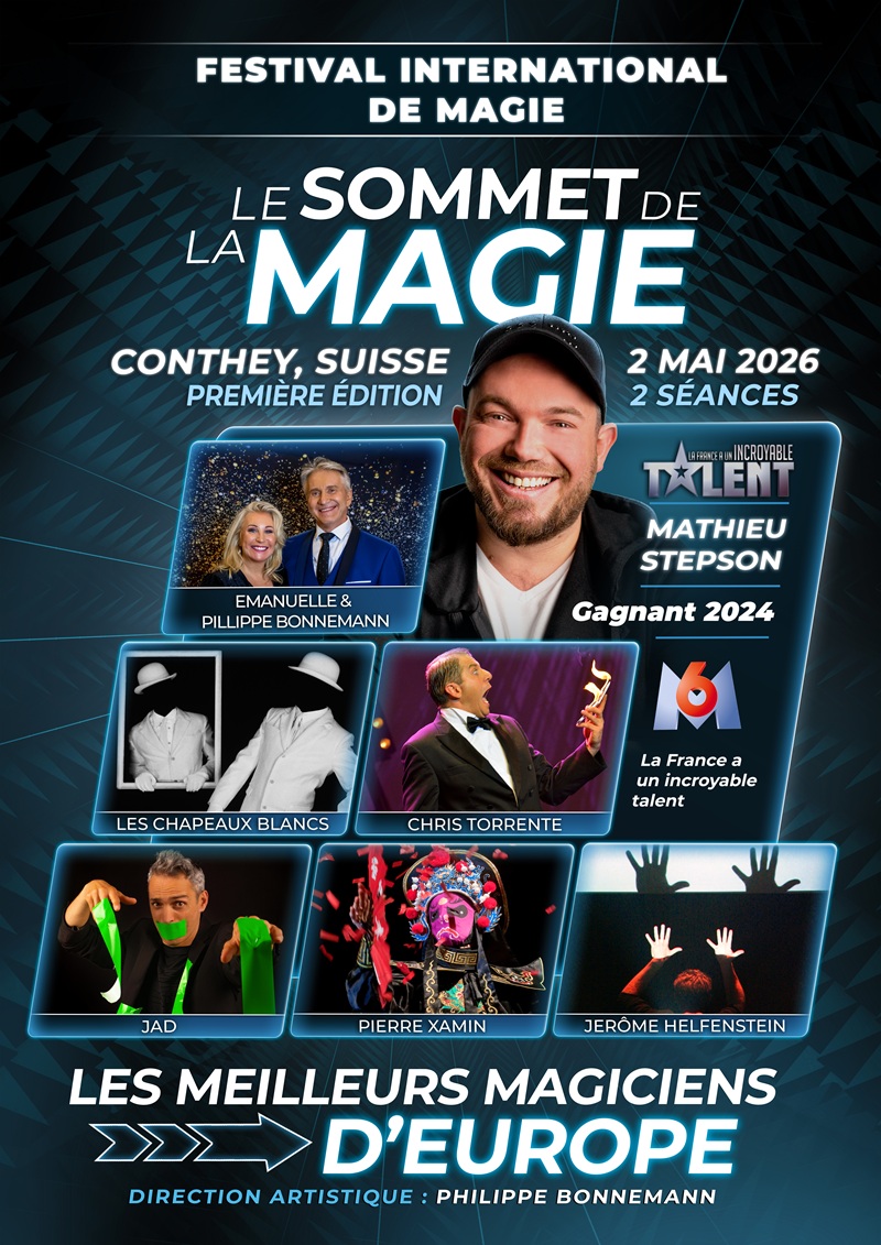 Le festival International « LE SOMMET DE LA MAGIE » ouvre ses portes pour sa toute première édition en 2026 à Conthey !, Retrouvez toutes les informations sur Le Sommet de la Magie, dès le 02.05.2026 à 15:00, Salle polyvalente, Conthey sur Tempslibre.ch ainsi que tous les autres spectacles dans le canton du Valais et en Suisse Romande