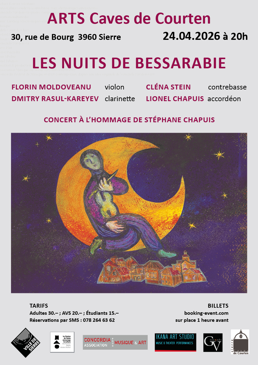 Dans la musique klezmer, les personnages magiques qui habitent les tableaux de Marc Chagall deviennent un véritable tableau vivant.Les Nuits de Bessarabie, formé des brillantes solistes de l’Orchestre de la Suisse Romande, vous transportent aux villages juifs du début du 20ème siècle avec un répertoire basé sur des mélodies recueillies en Ukraine dans les années 1920-30.Avec des résonnances de la musique du Moyen Orient et les rythmes fulgurant des danses des pays de l’Est, le klezmer est une musique où les larmes et les rires s’entremêlent.Les Nuits de Bessarabie ont reconnu un grand succès à travers l’Europe et ont eu l’honneur de se produire à l’Organisation des Nations Unis pour une commémoration importante.