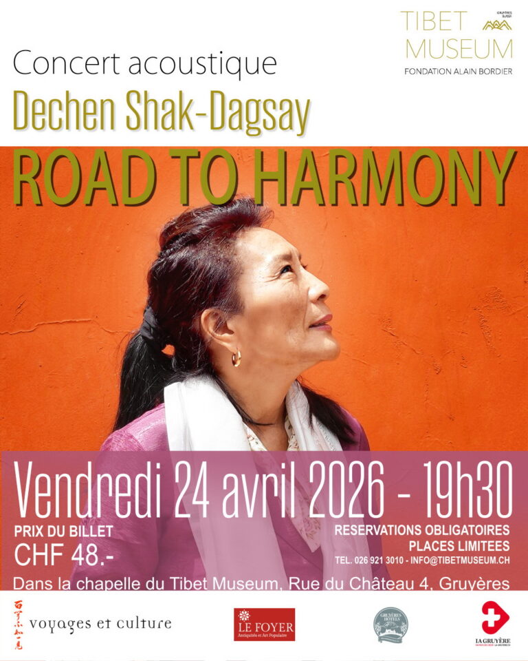 Dechen Shak-Dagsay est une chanteuse suisse née de parents tibétains. Elle a déjà donné plusieurs concerts au Tibet Museum qui ont chaque fois fait salle comble. Née au Népal, Dechen Shak Dagsay et ses parents se réfugient en Suisse en 1963. Sa famille étant préoccupée par la conservation de la culture tibétaine, elle étudie la danse et la musique tibétaine pendant son enfance et son adolescence. En 1989, elle fait ses débuts dans la musique avec le maxi-single Bodhicitta. Elle travaille ensuite sur le film Little Buddha de Bernardo Bertolucci à Londres. Son premier album Dewa Che, est sorti en 1999, en 2002, elle a réalisé son deuxième album, Shi De, a call for worldpeace, et 2004 son troisième CD Dcham Sem. En 2011 et 2014, elle enregistre deux albums avec Tina Turner, Regula Curti et Sawani Shende-Sathaye. Elle enregistre 13 albums et donne de nombreux concerts à travers le monde. Le 24 avril 2026, elle propose au Tibet Museum une version acoustique accompagnée par le flûtiste Jürg Zurmühle. RESERVATION OBLIGATOIRE: info@tibetmuseum.ch