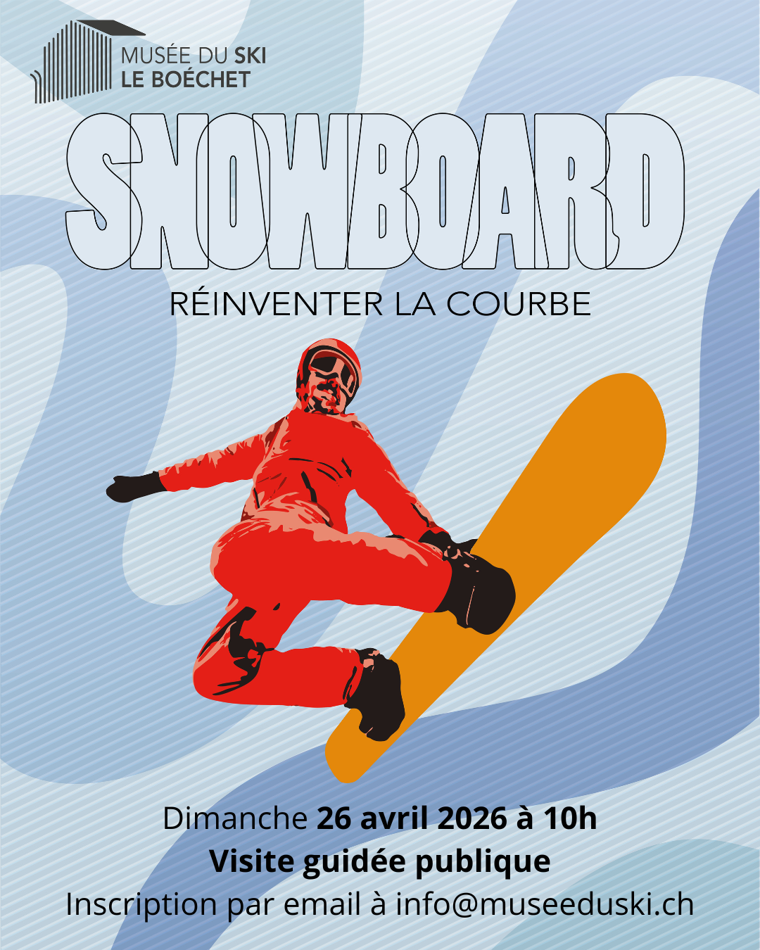 D'où vient le snowboard et comment a-t-il été accueilli chez nous ? Quel impact pour le ski ? Ce sont quelques-unes des thématiques qui seront abordées lors de la visite !, Retrouvez toutes les informations sur Visite guidée publique, dès le 26.04.2026 à 10:00, Musée du Ski - Le Boéchet, Les Bois sur Tempslibre.ch ainsi que tous les autres Manifestations dans les régions du Jura et Jura bernois et en Suisse Romande